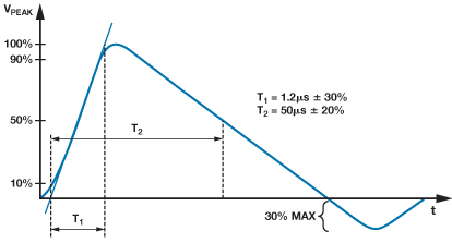 在浪涌測(cè)試期間,五個(gè)正脈沖和五個(gè)負(fù)脈沖被施加到數(shù)據(jù)端口,每個(gè)脈沖之間的最大時(shí)間間隔為一分鐘。該標(biāo)準(zhǔn)規(guī)定,應(yīng)在測(cè)試期間將設(shè)備設(shè)置在正常操作條件下。