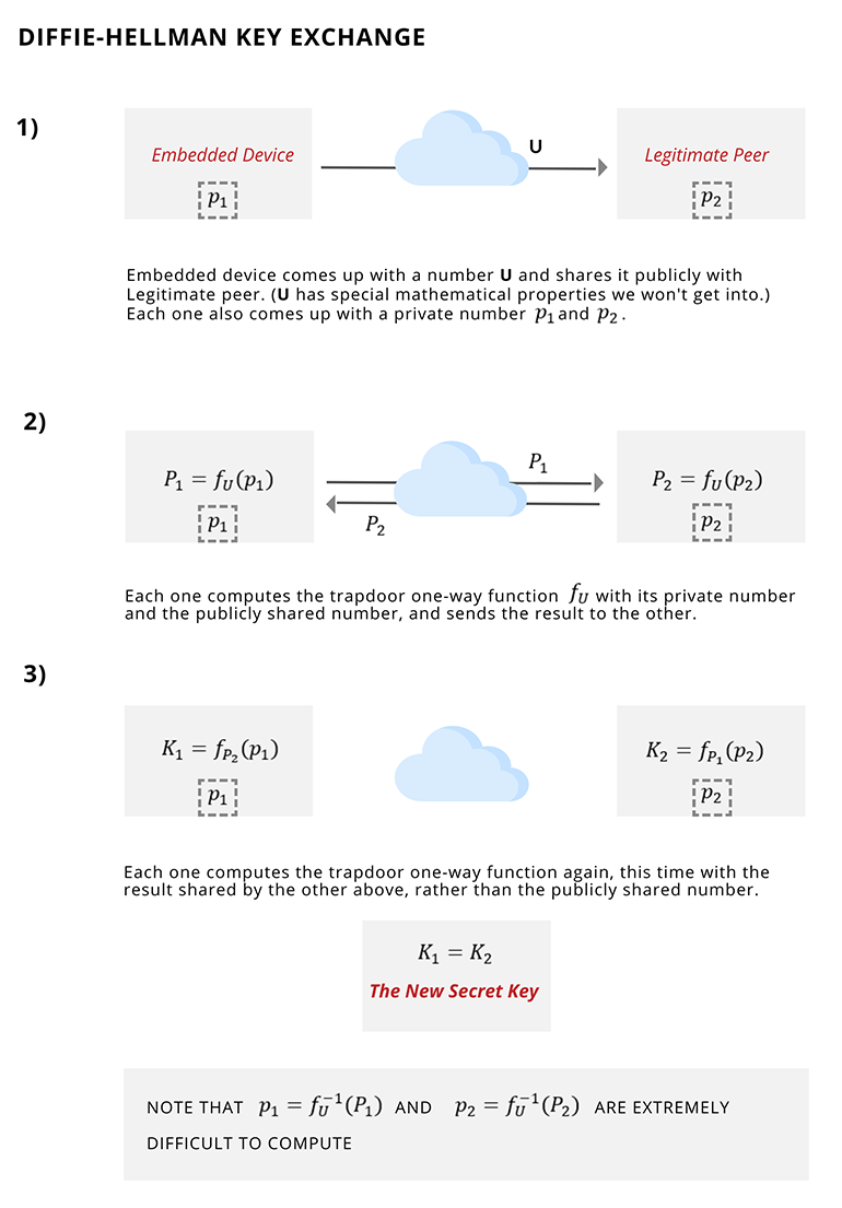 在任何時候,以我們選擇的任何頻率,我們都可以為嵌入式設(shè)備及其需要與之通信的任何對等方提供一種方法,以安全的方式商定新的密鑰。此新密鑰隨后可以用于對稱加密和解密,直到密鑰再次更改為止。如果發(fā)現(xiàn)任何秘密密鑰,那么黑客可以希望解密的傳輸數(shù)據(jù)量將取決于調(diào)用此新密鑰協(xié)商機制的頻率。