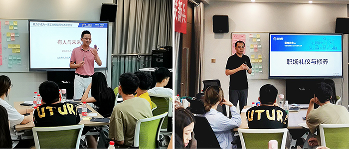 接下來,人力部幽默大方的楊老師以及年輕可愛的姬老師分別就《公司概況及文化》和《公司管理制度》,做了詳細的講解,以幫助小萌新們盡快熟悉并融入公司,聽完之后同學們感嘆:選擇了一家好公司,原來公司有這么完善的管理制度及流程吖。
