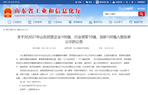 19日,山東省工信廳發(fā)布了關(guān)于對(duì)2021年山東民營企業(yè)100強(qiáng)、行業(yè)領(lǐng)軍10強(qiáng)、創(chuàng)新100強(qiáng)入圍名單公示的公告,山東有人物聯(lián)網(wǎng)股份有限公司成功入圍山東民營企業(yè)行業(yè)領(lǐng)軍10強(qiáng)!