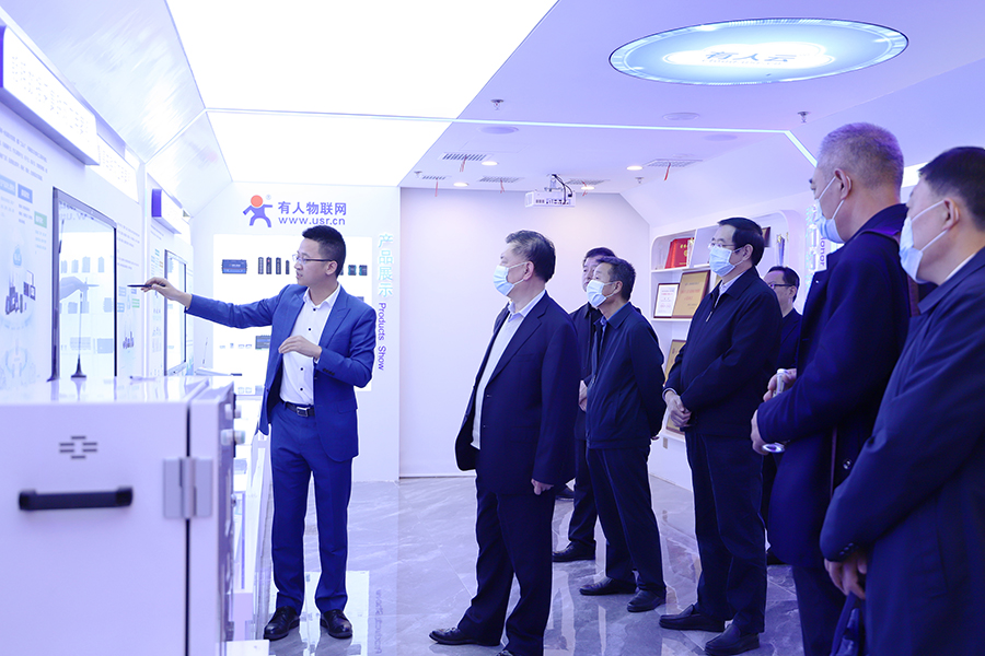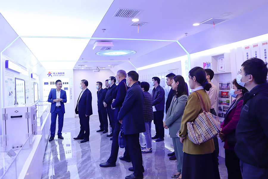 一行人在董事長古欣的陪同下,參觀了企業(yè)展廳,就有人物聯(lián)網在工業(yè)互聯(lián)網領域的建設及有人云平臺發(fā)展前景等情況進行了深入了解。