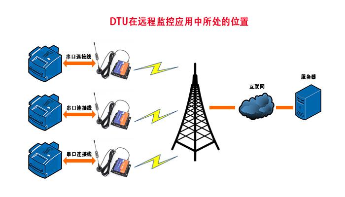 DTU是數(shù)據(jù)終端設(shè)備(Data Terminal unit)的簡(jiǎn)寫。廣義地講,在進(jìn)行通信時(shí),傳輸數(shù)據(jù)的鏈路兩端負(fù)責(zé)發(fā)送數(shù)據(jù)信息的模塊單元都稱之為DTU,在它的作用下對(duì)所傳信息進(jìn)行格式轉(zhuǎn)換和數(shù)據(jù)整理校驗(yàn)。狹義地講,DTU一般特指可以把傳感器/流量計(jì)/PLC/單片機(jī)等串口(RS232/RS485/TTL)設(shè)備采集的數(shù)據(jù),通過(guò)GSM/GPRS網(wǎng)絡(luò)(就是手機(jī)網(wǎng)絡(luò))將數(shù)據(jù)發(fā)送到指定的服務(wù)器(就是數(shù)據(jù)采集平臺(tái)/數(shù)據(jù)監(jiān)控平臺(tái)等),服務(wù)器接收到數(shù)據(jù)可以進(jìn)行分析、處理、顯示、保存等操作,同時(shí)也可以通過(guò)DTU發(fā)送一些信息給遠(yuǎn)端的串口設(shè)備,去執(zhí)行一些動(dòng)作。