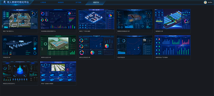 2、監(jiān)控大屏支持自定義,可以自行繪制后替換默認(rèn)大屏,也可以使用現(xiàn)成的大屏模板一鍵獲得專(zhuān)業(yè)酷炫大屏。