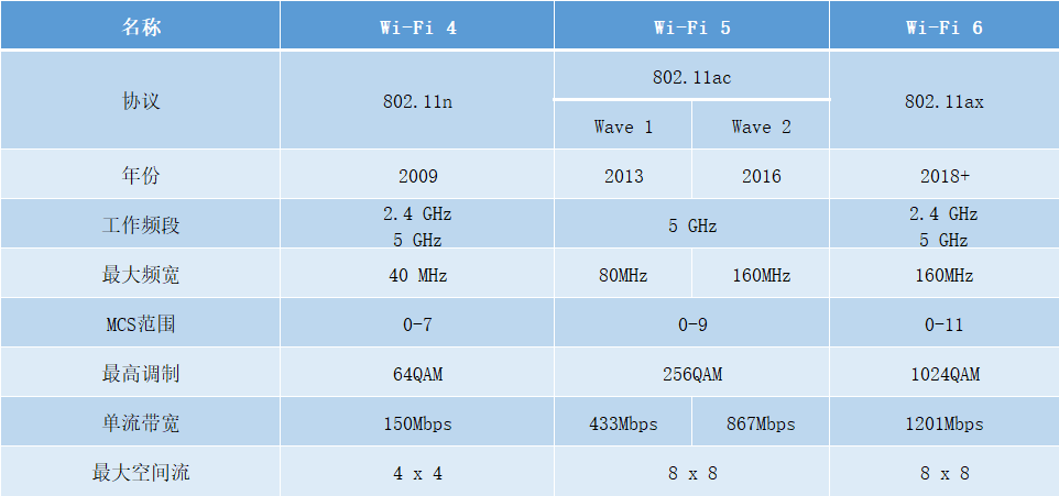 WiFi4、WiFi5、WiFi6參數(shù)對(duì)比
