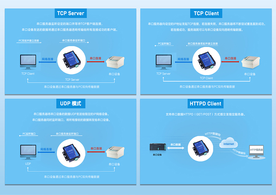 您可以通過互聯(lián)網(wǎng)在世界各地存儲(chǔ)、管理和配備遠(yuǎn)程控制的機(jī)器設(shè)備。串口服務(wù)器提供串口轉(zhuǎn)互聯(lián)網(wǎng)功能,串口服務(wù)器可以將RS232/485/422串口轉(zhuǎn)換為TCP/IP網(wǎng)絡(luò)接口,保持RS-232/485/422串口和TCP/IP網(wǎng)絡(luò)接口的統(tǒng)計(jì)數(shù)據(jù)雙向透明傳輸。促使串口設(shè)備立即具有TCP/IP網(wǎng)絡(luò)接口功能,網(wǎng)絡(luò)連接進(jìn)行數(shù)據(jù)通信,大大擴(kuò)大串口設(shè)備的通信間距。