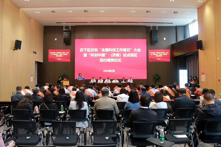 5月29日上午,歷下區(qū)慶?!叭珖萍脊ぷ髡呷铡贝髸摺翱苿?chuàng)中國”(濟南)試點園區(qū)簽約揭牌儀式在齊魯科技金融大廈成功舉辦。濟南市科協(xié)黨組成員、副主席李武,歷下區(qū)區(qū)委副書記徐法賢,區(qū)人大常委會黨組成員、副主任王文利,區(qū)政協(xié)副主席劉軍,區(qū)科協(xié)黨組書記、主席、一級調(diào)研員張文晉出席活動。