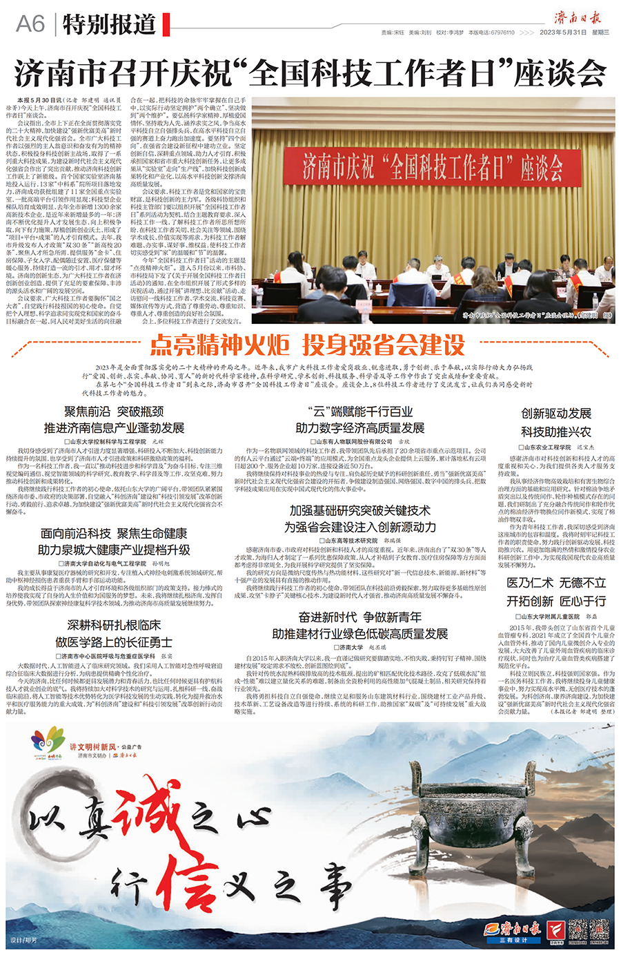 5月30日上午,濟南市慶祝“全國科技工作者日”座談會在龍奧大廈舉行。市委常委、副市長孫斌,市政府副秘書長吳劍,市科協(xié)黨組書記、副主席賈文濤,市科技局黨組成員、副局長王芳,市科協(xié)黨組成員、副主席李武、潘玉斌等領(lǐng)導(dǎo)出席會議。作為2023年度濟南市優(yōu)秀科技工作者,有人物聯(lián)網(wǎng)董事長參加會議。