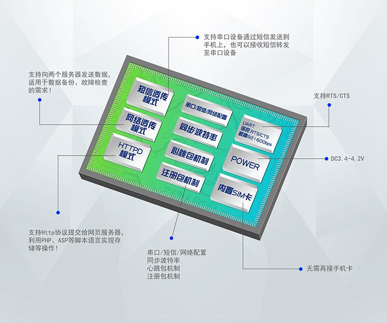 在所有GPRS模塊都需要SIM卡槽的時(shí)候,有人推出了內(nèi)置SIM卡的無(wú)線數(shù)傳模塊——GM3S,GM3S是GM3的升級(jí)之作,繼承了GM3的小體積、多功能的優(yōu)良特點(diǎn),并更加強(qiáng)大。GM3S是業(yè)界一款里程碑之作,標(biāo)志著GPRS模塊進(jìn)入內(nèi)置SIM卡時(shí)代,從此您不用與運(yùn)營(yíng)商打交道,大大節(jié)約了您的金錢與時(shí)間成本。有人希望通過(guò)自身的不斷努力,為您帶來(lái)使用更加簡(jiǎn)單的物聯(lián)網(wǎng)聯(lián)網(wǎng)設(shè)備。