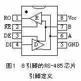由于它使用一對(duì)雙絞線傳送差分信號(hào),屬半雙工通信,所以需要進(jìn)行接收和發(fā)送狀態(tài)的轉(zhuǎn)換。一般的8腳TTL電平到RS-485電平轉(zhuǎn)換芯片的引腳定義如圖1所示。