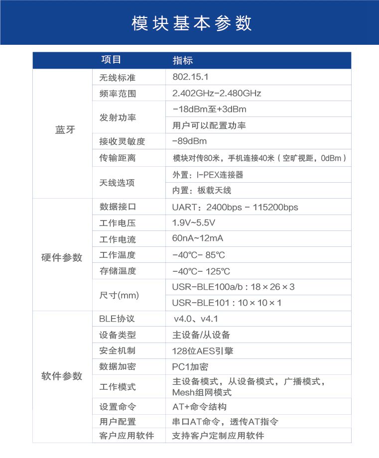 USR-BLE100是一款多功能、工業(yè)級、低功耗藍牙模塊。