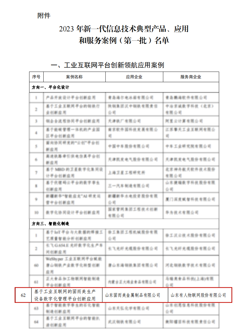 12月27日,工業(yè)和信息化部發(fā)布《關(guān)于2023年新一代信息技術(shù)典型產(chǎn)品、應(yīng)用和服務(wù)案例(第一批)名單的公示》。經(jīng)企業(yè)自主申報(bào)、單位推薦、專家評審等環(huán)節(jié),本次工業(yè)互聯(lián)網(wǎng)平臺(tái)創(chuàng)新領(lǐng)航應(yīng)用案例全國共入選211個(gè)案例,有人物聯(lián)網(wǎng)“基于工業(yè)互聯(lián)網(wǎng)的固而美生產(chǎn)設(shè)備數(shù)字化管理平臺(tái)創(chuàng)新應(yīng)用”榮登“工業(yè)互聯(lián)網(wǎng)平臺(tái)創(chuàng)新領(lǐng)航應(yīng)用案例-智能化制造方向”名單。
