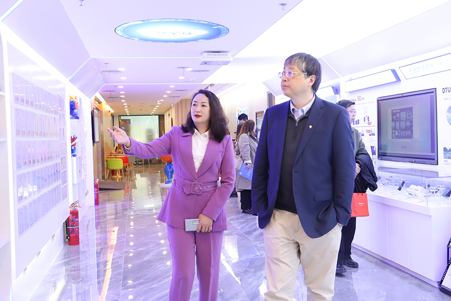 在參觀有人物聯(lián)網(wǎng)時,徐斌教授一行首先觀看了創(chuàng)始人品牌故事視頻,深入了解有人物聯(lián)在董事長古欣的努力奮斗下,從無到有、從小到大,不斷創(chuàng)新、不斷突破,逐漸成長為行業(yè)領(lǐng)軍企業(yè)的過程。隨后,在崔曉紅副總裁的介紹下,聽取了公司發(fā)展歷程、生產(chǎn)經(jīng)營狀況、企業(yè)榮譽資質(zhì)、重點產(chǎn)品及典型應(yīng)用案例等情況,觀看了公司在物聯(lián)網(wǎng)技術(shù)成果、工業(yè)互聯(lián)網(wǎng)平臺等賦能工業(yè)、樓宇物業(yè)、農(nóng)業(yè)養(yǎng)殖等相關(guān)典型案例的操作與演示,詳細了解了公司在物聯(lián)網(wǎng)領(lǐng)域、數(shù)字經(jīng)濟的研發(fā)成果、產(chǎn)品應(yīng)用和市場前景。