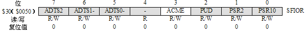 與模擬比較器相關(guān)的寄存器是SFIOR、ACSR。用戶通過這兩個寄存器的相關(guān)位實現(xiàn)對模擬比較器的設(shè)置和控制。