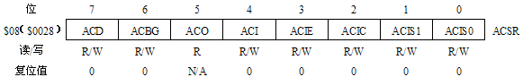 ACSR是模擬比較器主要的控制寄存器,其中各個位的作用如下: