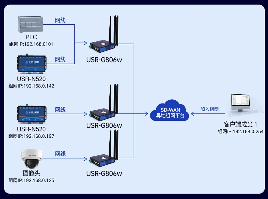 支持IP通信的終端(PLC、攝像頭、工控板等)均可無縫接入,打破地域限制,使用異地組網(wǎng)實(shí)現(xiàn)絲滑遠(yuǎn)程訪問。