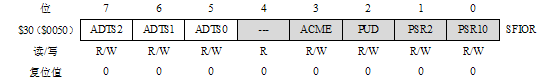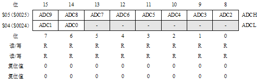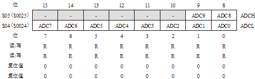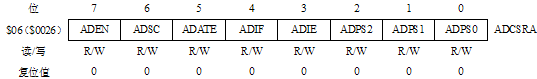 在ADC轉(zhuǎn)換的過程中,ADSC將始終讀出為“1”。當(dāng)轉(zhuǎn)換完成時,它將轉(zhuǎn)變?yōu)椤?”。強制寫入“0”是無效的。