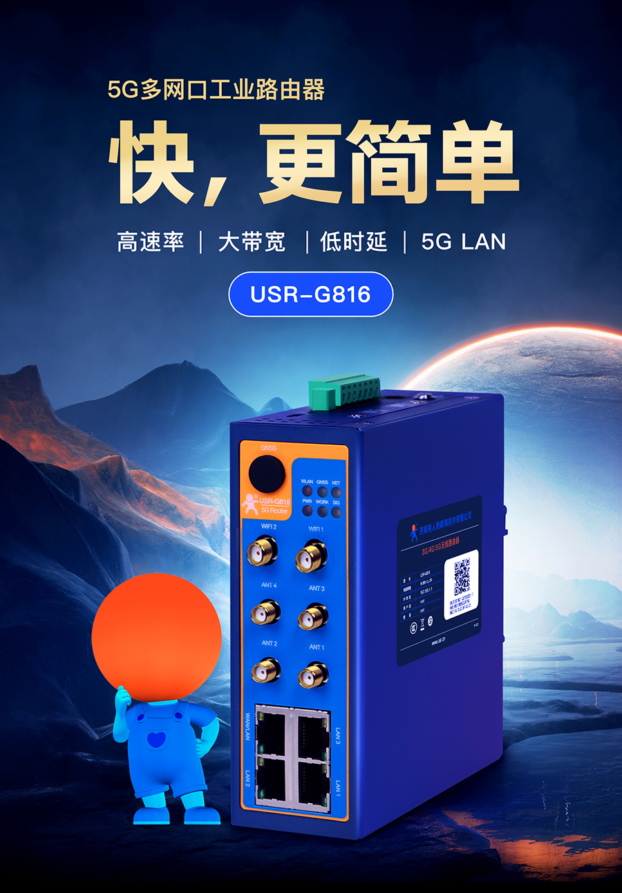 以USR-G816為例,其采用的3GPP R17標準RedCap模組,在保持5G性能的同時,將模組尺寸縮小50%,功耗降低70%,更適用于智能電表、環(huán)境傳感器等低功耗場景。