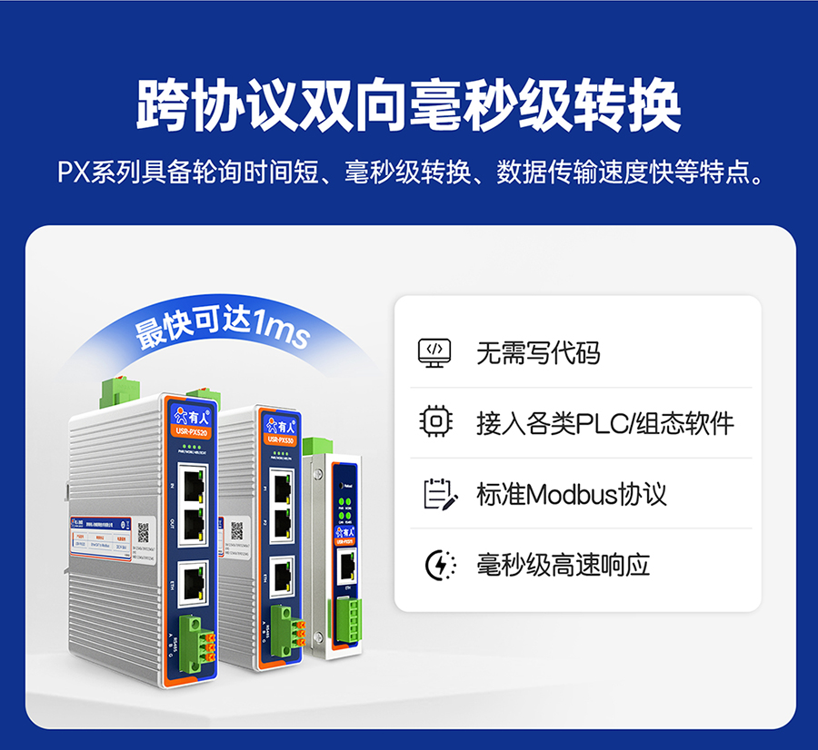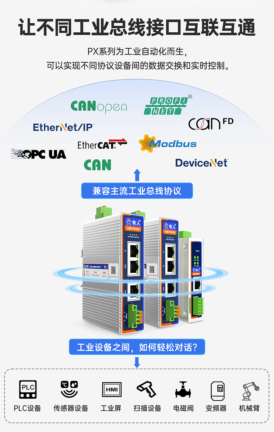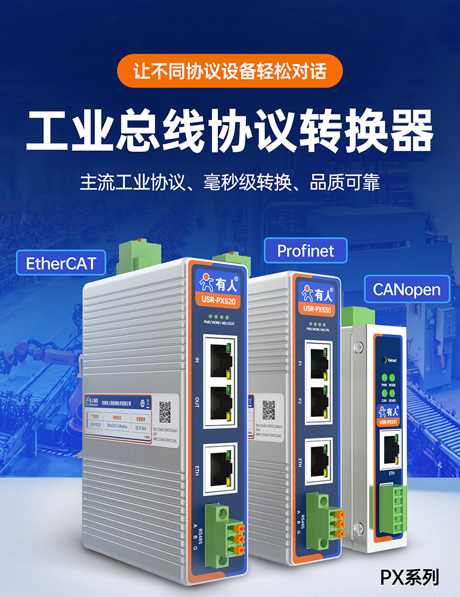 以上困境,交給有人全新推出的工業(yè)總線轉(zhuǎn)換器USR-PX系列!我們比任何人都清楚:穩(wěn)定、兼容、成本才是工控剛需!