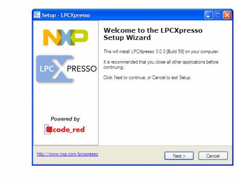 LPCXpresso可以按照默認(rèn)路徑安裝,也可以自定義安裝路徑。多種版本可以同時(shí)安裝,不會(huì)互相沖突。軟件下載完成后,雙擊安裝文件開(kāi)始安裝,單擊“下一步”,如下圖。