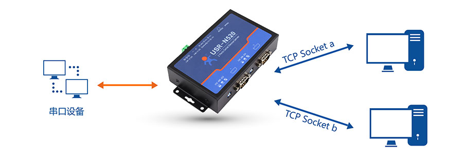 串口服務(wù)器同時(shí)監(jiān)聽端口,將所有接收的數(shù)據(jù)轉(zhuǎn)發(fā)給串口設(shè)備。