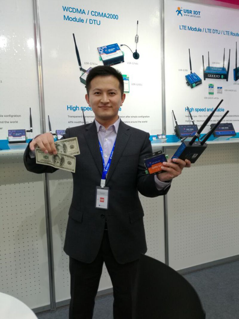 我們的銷售副總手持顧客已購買的GPRS DTU和4G工業(yè)路由器