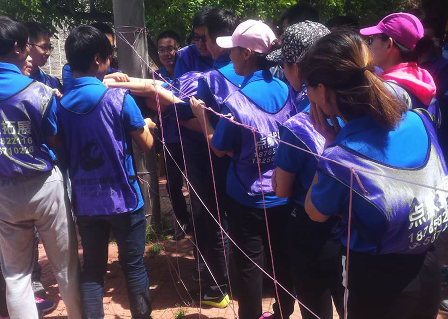 每位隊(duì)員都需要穿越一張與地面垂直的“電網(wǎng)”(繩網(wǎng)),網(wǎng)上的一個(gè)洞就是一條生路,但每條生路都只能使用一次。身體的任何部分,都不許碰到繩子的邊緣,碰到即為“觸電”。