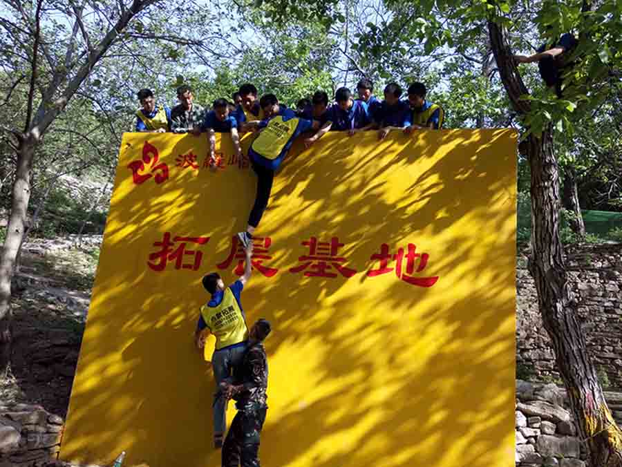 要求全隊(duì)所有成員在規(guī)定的時(shí)間內(nèi)翻越一面高4.26米的光滑墻面,在此過程中,大家不能借助任何外界的工具,所能用的資源只有每個(gè)人的身體。