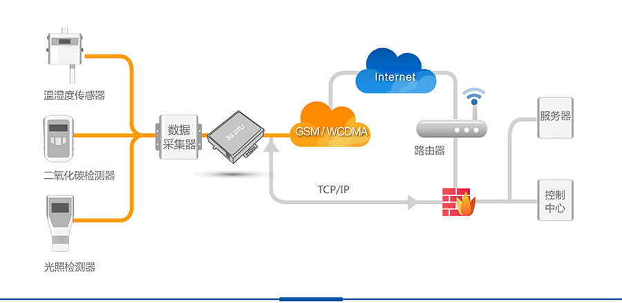 在智能農(nóng)業(yè)企業(yè)中,3G DTU可以將農(nóng)業(yè)大棚里的各類傳感器數(shù)據(jù)進(jìn)行采集,并傳輸?shù)竭h(yuǎn)程服務(wù)器及 控制中心,實(shí)現(xiàn)數(shù)據(jù)實(shí)時監(jiān)測,促進(jìn)農(nóng)業(yè)物聯(lián)網(wǎng)的發(fā)展。