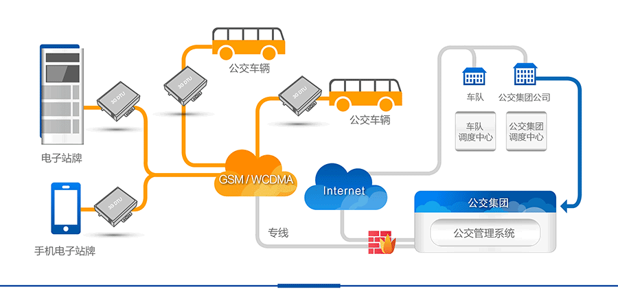公交集團(tuán)采購大量3G DTU應(yīng)用到公交汽車中,將公交汽車的各類信息(包括位置信息、IC卡數(shù)據(jù)等) 實(shí)時發(fā)送到各類平臺上,方便用戶乘車,實(shí)現(xiàn)智慧城市。