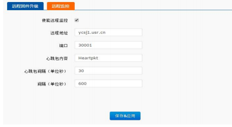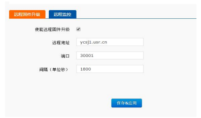 遠(yuǎn)程的端口設(shè)定為默認(rèn)值30001,間隔是設(shè)備上報(bào)信息給遠(yuǎn)程服務(wù)器的時(shí)間,為1800秒,遠(yuǎn)程升級功能默認(rèn)打開。