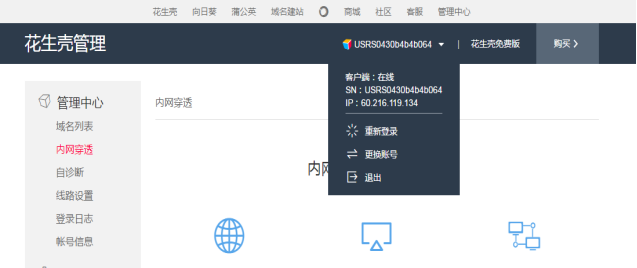 第六,內(nèi)網(wǎng)穿透。切換到賬號(hào)登錄后,點(diǎn)擊左側(cè)的內(nèi)網(wǎng)穿透。