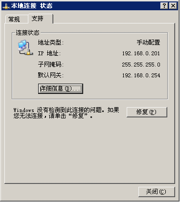 注:模塊所在局域網(wǎng)的IP分配情況和默認(rèn)網(wǎng)關(guān)如果不清楚可以查看電腦的本地連接狀態(tài)的支持面板,無(wú)論是自動(dòng)獲取的IP還是手動(dòng)分配的IP都能看到,雙擊右下角的電腦小圖標(biāo)即可打開(kāi)。