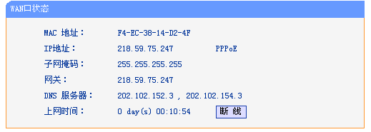 3、在路由器的狀態(tài)頁(yè)查看設(shè)備的外網(wǎng)IP,下面的218.59.75.247