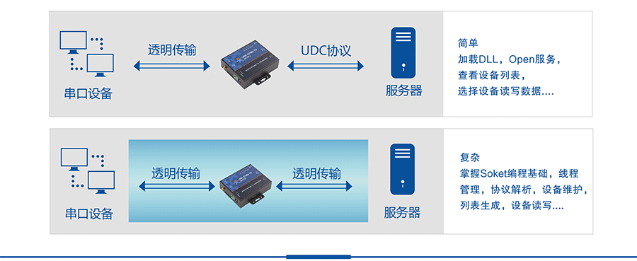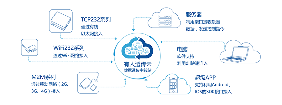 提供了服務(wù)器端二次開發(fā)包,用戶掌握設(shè)備的上線情況和數(shù)據(jù)傳輸,既方便了用戶開發(fā),也提高了服務(wù)器端的統(tǒng)一性、穩(wěn)定性和可靠性。