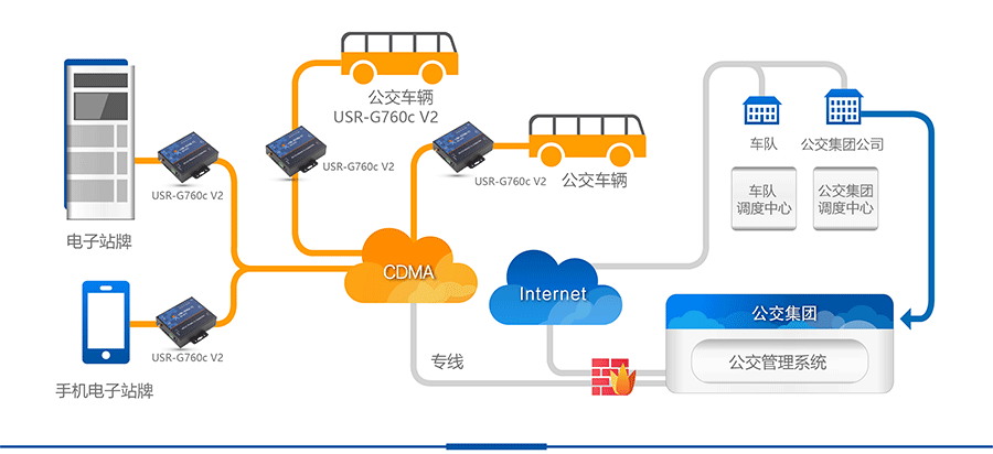 公交集團(tuán)采購大量3G DTU應(yīng)用到公交汽車中,將公交汽車的各類信息(包括位置信息、IC卡數(shù)據(jù)等)