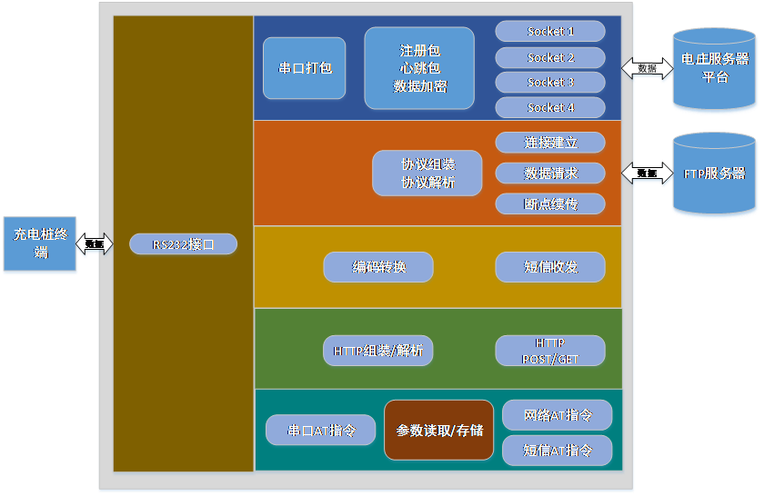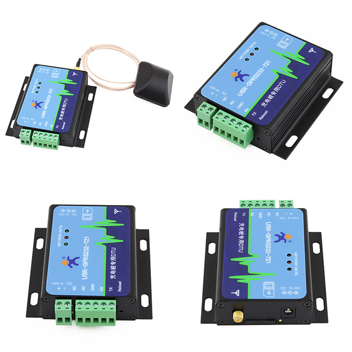 USR-GPRS232-721充電樁專用DTU(以下簡稱DTU)是專門為充電樁平臺開發(fā)的一款通訊設(shè)備。設(shè)備在硬件上支持9V至24V寬電壓供電,供電方式可選擇DC插座或DIP端子供電,在通訊接口上提供RS232,并使用端子引出,可讓用戶方便的與終端設(shè)備通訊。在軟件上支持4路Socket通訊,支持心跳包,注冊包等功能,以上可以使用AT指令進行設(shè)置。并且支持FTP協(xié)議,通過簡單的協(xié)議可以輕松下載遠程服務(wù)器上的文件,并為充電樁終端遠程升級提供解決方案。