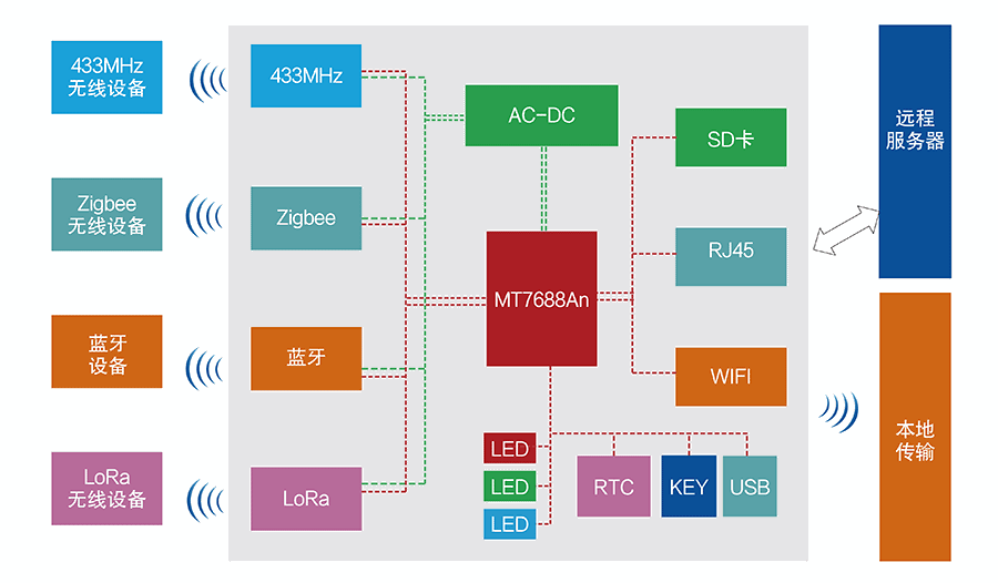 1、硬件實(shí)現(xiàn)各類主流無線技術(shù)向網(wǎng)絡(luò)的雙向數(shù)據(jù)轉(zhuǎn)換