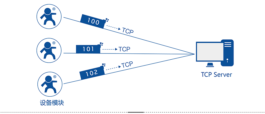 此模式下,用戶的串口設(shè)備可以通過(guò)DTU發(fā)送數(shù)據(jù)到指定的服務(wù)器上,DTU也可以將服務(wù)器的數(shù)據(jù)轉(zhuǎn)發(fā)到串口設(shè)備上。