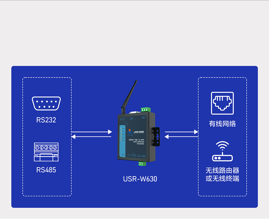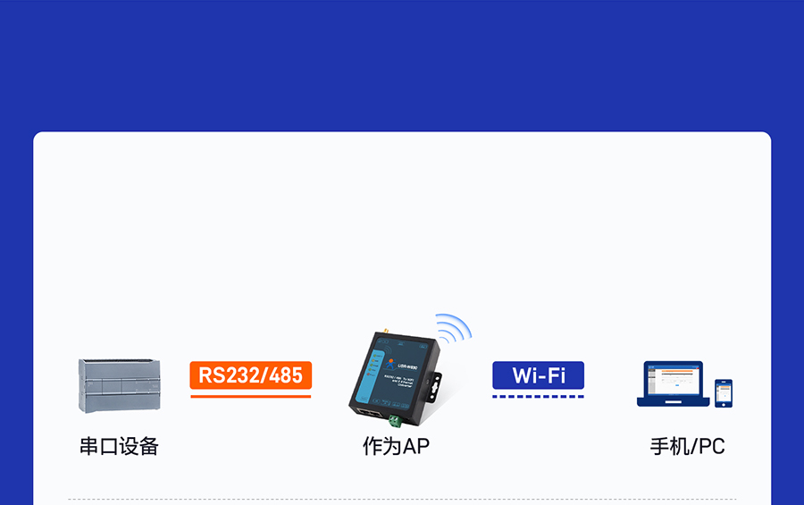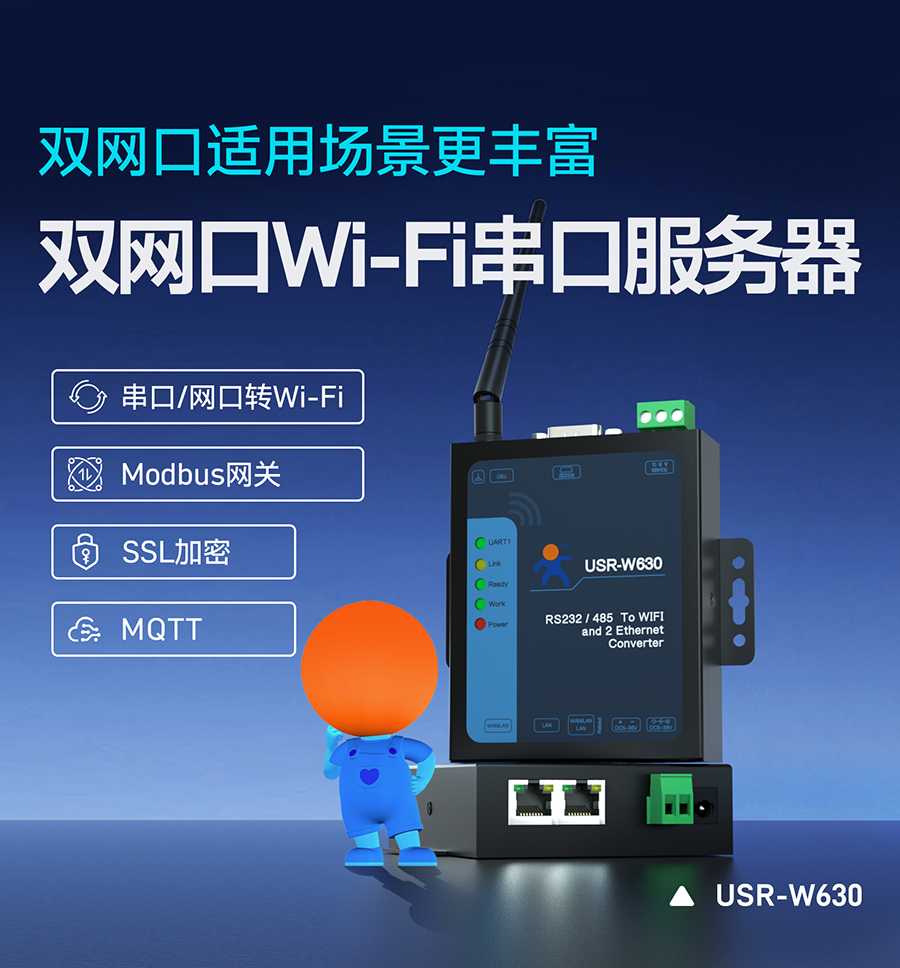 USR-w630作為無線AP使用,提供Wi-Fi接入點功能,可實現串口終端與