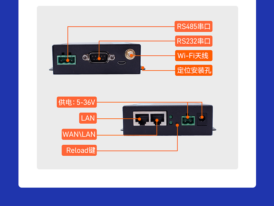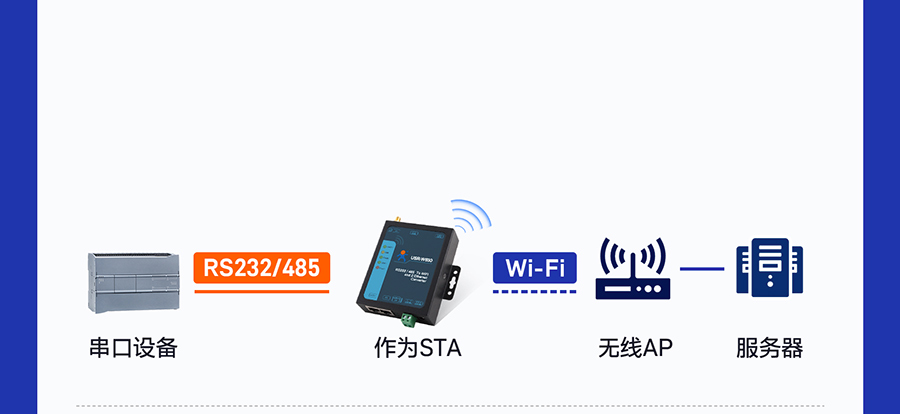 實現RS232或RS485與Wi-Fi或以太網間的雙向數據透傳。