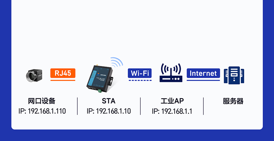 USR-w630作為STA使用,通過Wi-Fi連接其他AP設備(如路由器),實現