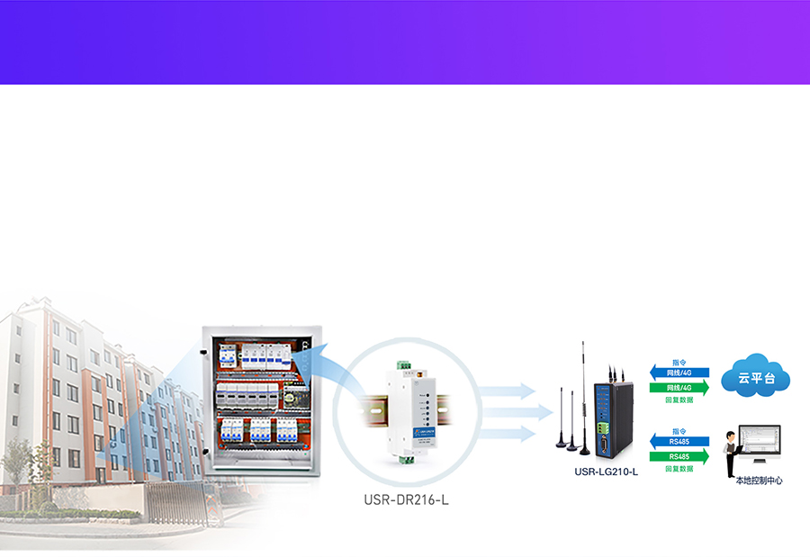 USR-DR216-L設(shè)備進行無線LoRa數(shù)據(jù)傳輸,可進行無線抄表、無線控制樓內(nèi)設(shè)備等,