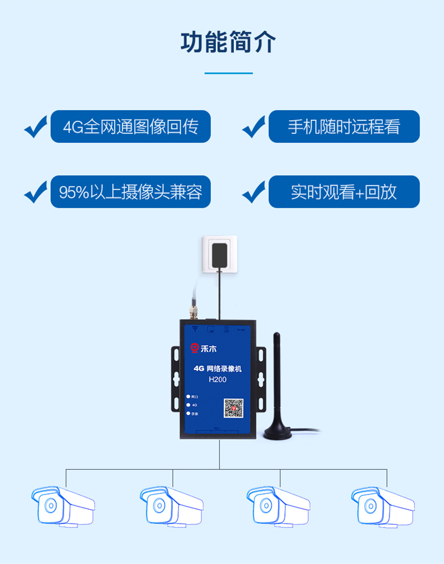 H200是一款4G NVR產(chǎn)品,可以同時(shí)采集4路IPC畫面,并通過(guò)4G cat1實(shí)現(xiàn)APP端遠(yuǎn)程監(jiān)控。產(chǎn)品支持最大512G內(nèi)存卡,兼容H265/H264編碼視頻,搭配禾木看看 APP可以查看回放視頻、實(shí)時(shí)視頻流等功能
