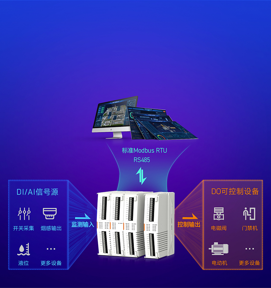 USR-IO積木式控制器支持標(biāo)準(zhǔn)Modbus RTU采集、控制,