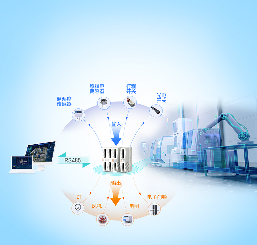 自動化產(chǎn)線改造:將IO控制器接入自動化產(chǎn)線設(shè)備,通過RS485采集、