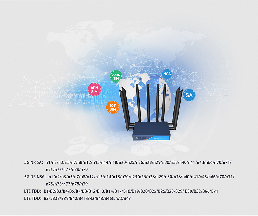 支持全球主流5G/4G頻段,支持5G SA/NSA組網(wǎng)方式,全球主流運營商