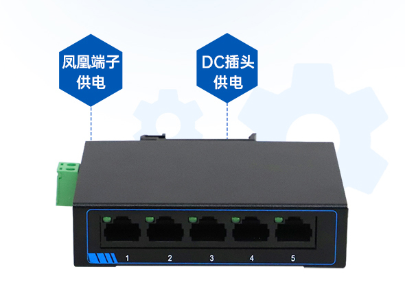 兩種供電方式 支持DC插頭供電和鳳凰端子供電,DC插頭供電更快捷,鳳凰端子供電更牢固,適應不同場景。