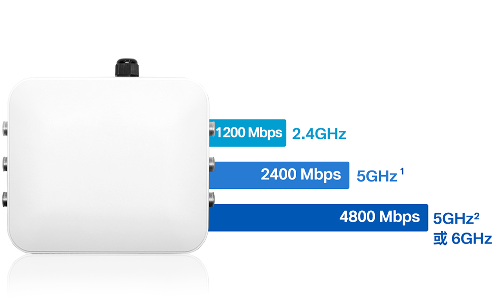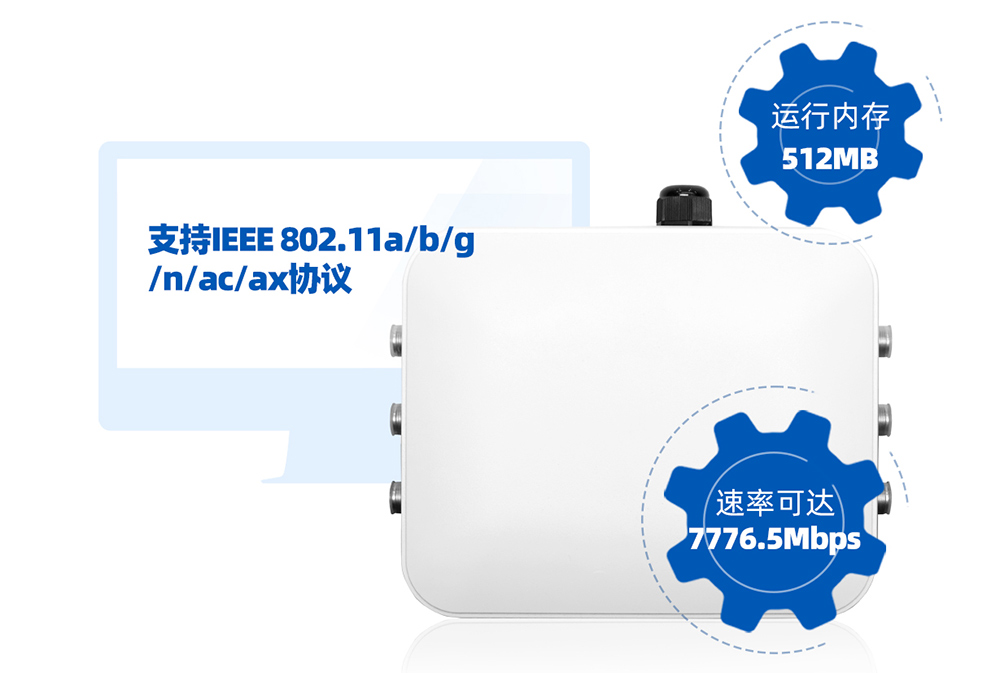 NR530X | 戶外WiFi 6/WiFi 6E AX7800 三頻AP WiFi 6商用AP, 工業(yè)AP, 802.3at PoE供電 AP530X是一款戶外型WiFi 6/WiFi 6E三頻AP。產(chǎn)品基于強大的高通無線核心,27dBm的強大功率搭配外置天線可實現(xiàn)更大的覆蓋范圍,支持IEEE 802.11a/b/g/n/ac/ax協(xié)議,默認(rèn)支持WiFi 6三頻(2.4Ghz/5Ghz-1/5Ghz-2),可選支持WiFi 6E三頻(2.4Ghz/5Ghz/6Ghz),三頻并發(fā)接入最高速率接近7800Mbps,標(biāo)配512MB的運行內(nèi)存(支持定制256MB到1GB)。優(yōu)異的性能和穩(wěn)定性不僅源自于高端的高通核心平臺,更依賴于我們專業(yè)的研發(fā)團隊的軟硬件設(shè)計。產(chǎn)品可以廣泛應(yīng)用于園區(qū)覆蓋、能源礦場、智慧碼頭、倉儲物流、智慧城市、展館會場等行業(yè)和場景。