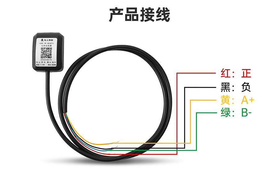 紅:電源正、黑:電源負(fù)、黃:485A(+)、綠:485B(-)