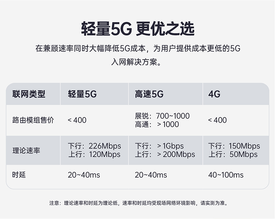 注明:蜂窩速率受網(wǎng)絡環(huán)境影響,具體速率以現(xiàn)場實測為準